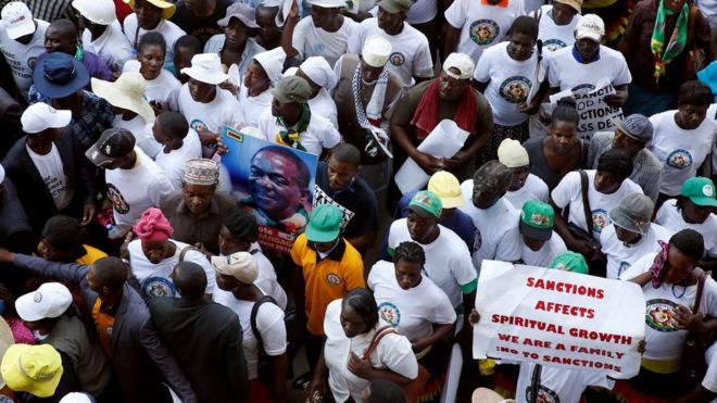 Zimbabweans March Against Eu And Us Sanctions Bbc News